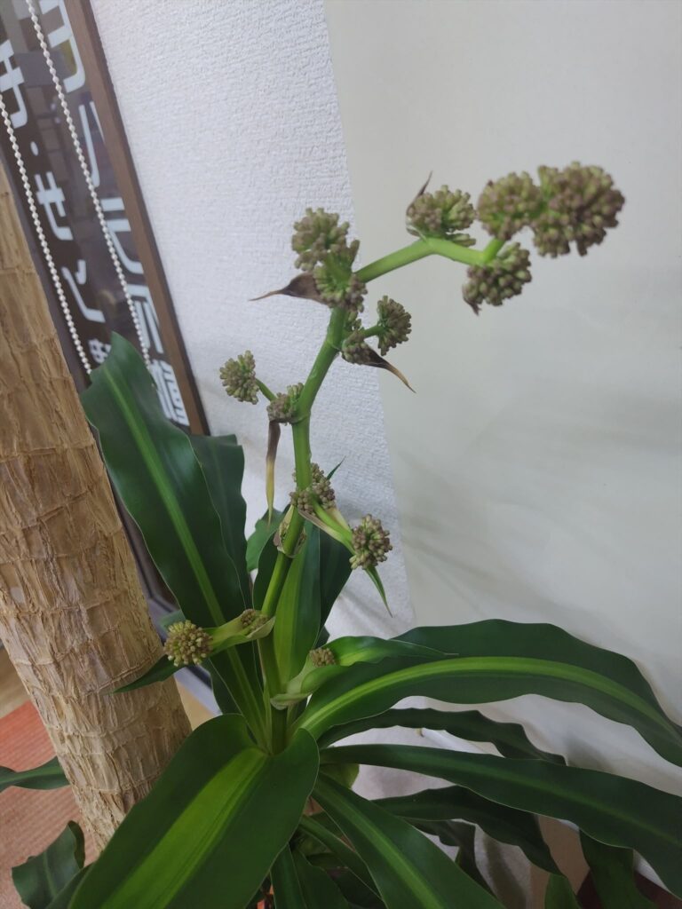 まさかの・・・ 草木店の幸福の木🌲 12月12日ブログの写真がこちら😀 そしてきのう✨ ニョキニョキ伸びております🎵 いつごろ咲くかなーこの前はどんな感じだったかなーと 前回咲いた2年前のブログを見返したら 12/8 つぼみがぐんぐん伸びている 12/16 花が咲き始める 12/19 ほぼ満開(8分咲き) 12/23 だいぶしおれてきたのでおしまい ・・・えーっと・・・ 今回もしかして見られない❗❓ まさかのお正月休み中に満開かも・・・という 奇跡からの悲劇😢